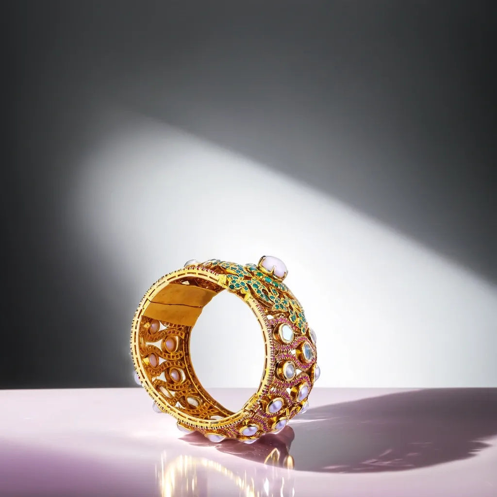 Feast your eyes upon nature's most radiant riches. This exquisite bracelet intertwines cultured pearls with fiery rubies and forest-green emeralds in a dazzling display of luxury. Rubies the shade of ripe raspberries mingle with emeralds reminiscent of sunlit ferns, creating a vibrant tapestry that mirrors the wild beauty of a lush landscape. Yet the bracelet's lustrous pearls temper the richness with an aura of elegance and sophistication. Each gemstone is precisely set in jewelry craftsmanship worthy of royalty, so you can indulge in a touch of opulence every time you slip on this regal accessory. Whether gracing your wrist at a gala or elevating a casual weekend look, this bracelet proves some of life's greatest luxuries come in petite, bejeweled packages.