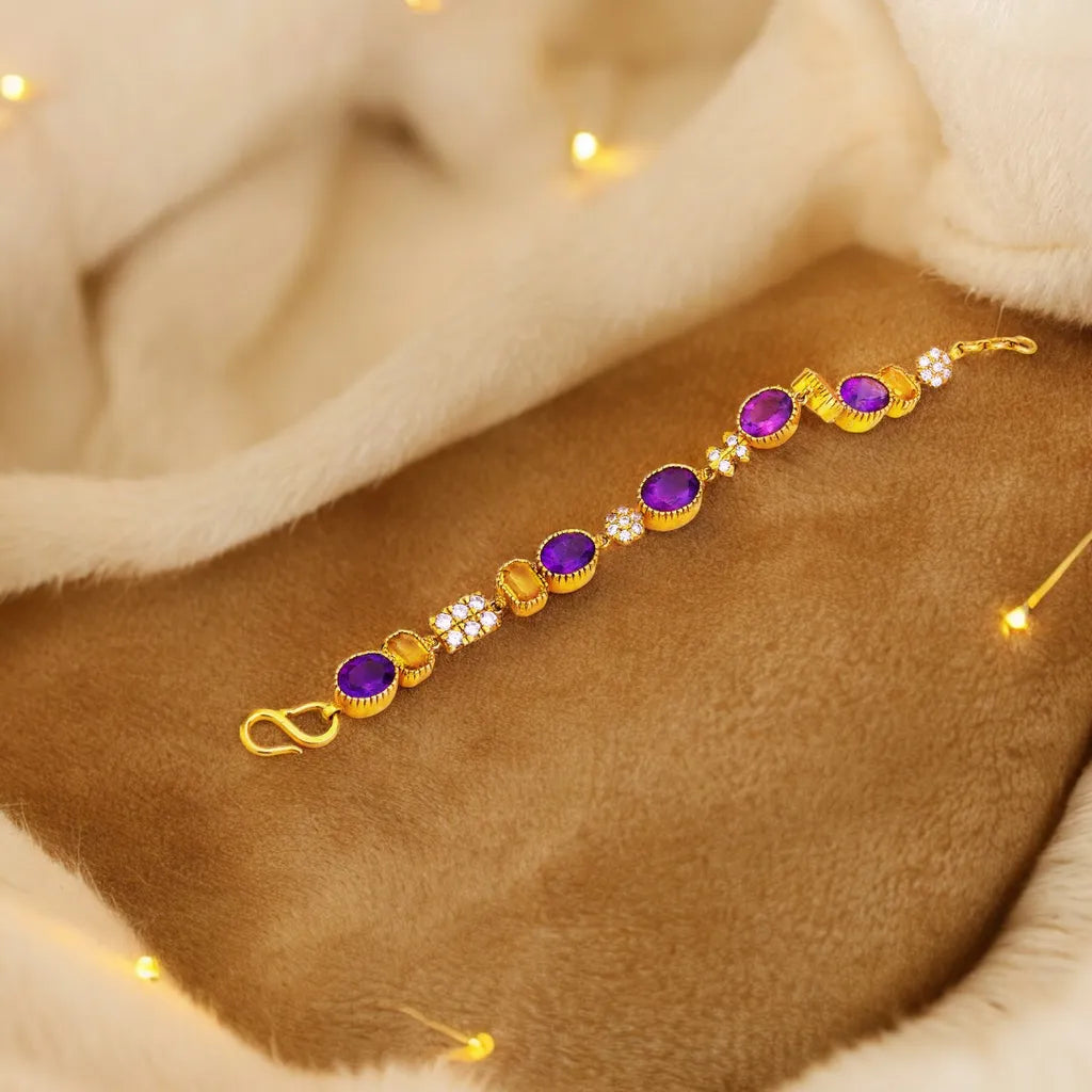 Lilac Love is a feast for the senses. Amethyst and lemon topaz gemstones blend their vibrant purple and golden hues into a bracelet so eye-catching, you'll struggle to take your eyes off it. The radiant gemstone blend is punctuated with sparkling cubic zirconia accents that add a dazzling brilliance. This luxury bracelet exudes glamor and sophistication, making it the perfect accessory for elevating evening looks or adding a touch of elegance to casual outfits. Whether worn for special occasions or "just because", Lilac Love is a statement piece that commands attention. Bring home this sumptuous gemstone blend and let your wrist do the talking.