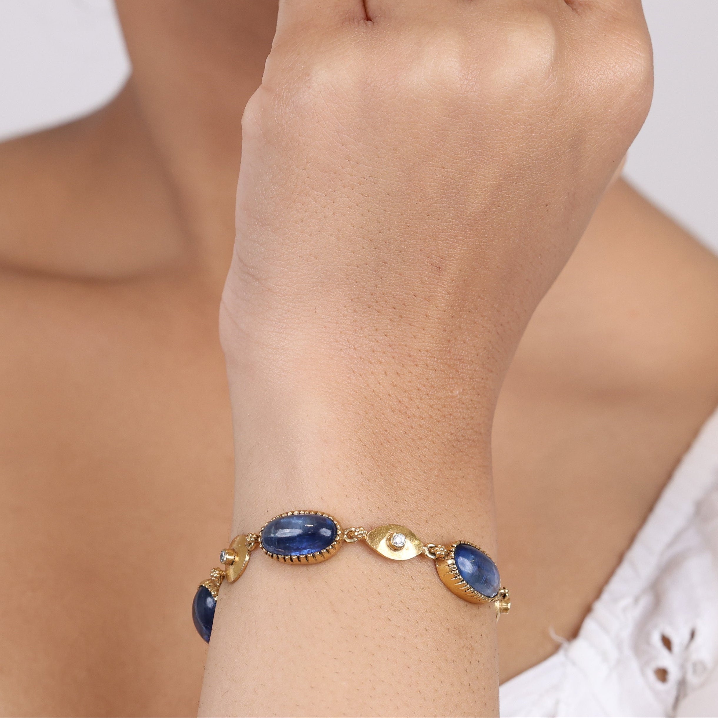 Let the brilliance of nature's finest gemstones adorn your wrist. This bracelet's kyanite and cubic zirconia blend effortlessly blends elegance with vibrant sparkle. Reminiscent of a bluebell sky, the gemstones' rich blue hues flawlessly complement any skin tone or ensemble. The kyanite's serene color palette is punctuated by cubic zirconia's brilliant flashes—the perfect accessory to elevate looks from day to night. A timeless jewelry box staple, this bracelet's luxurious gemstone blend dazzles whether worn for a special occasion or elevated everyday styling. Capture nature's radiance with this exquisite piece that brings effortless glamor to any wrist.