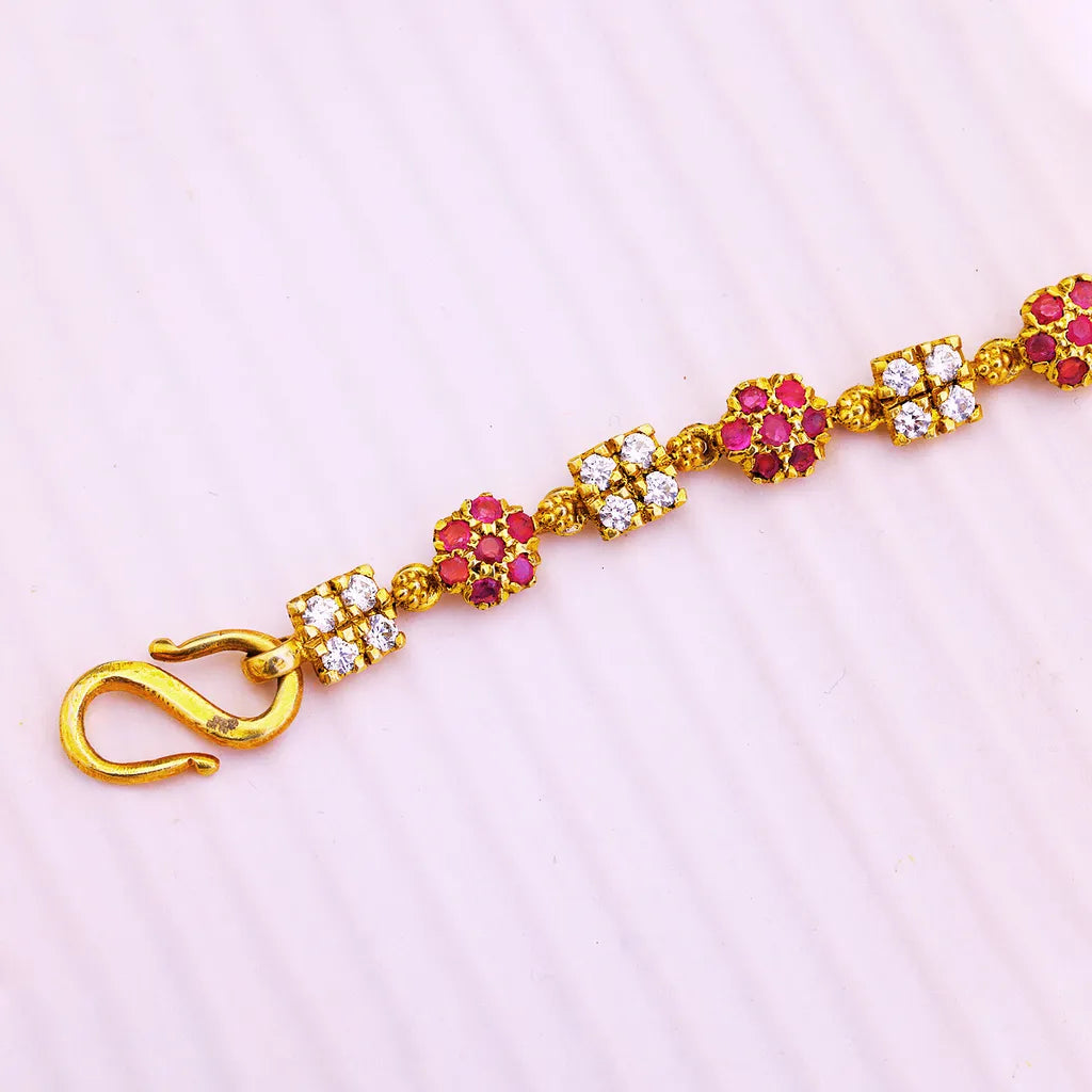 Make way for the Royal Rubies bracelet, a decadent fusion of fiery rubies and shimmering cubic zirconia. Every link drips with luxury, each ruby winking like a sumptuous gemstone plucked from a treasure chest. This lavish cubic zirconia bracelet is an indulgence fit for a queen, sparkling with elegant opulence. With the Royal Rubies gracing your wrist, there's no need for a crown—their rich crimson and crystalline luster will command attention wherever you reign. Treat yourself to this ruby bracelet; a little luxury never hurt anyone.