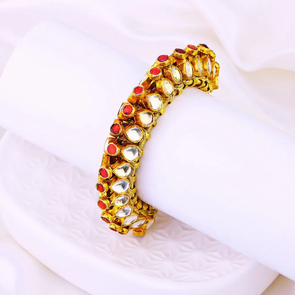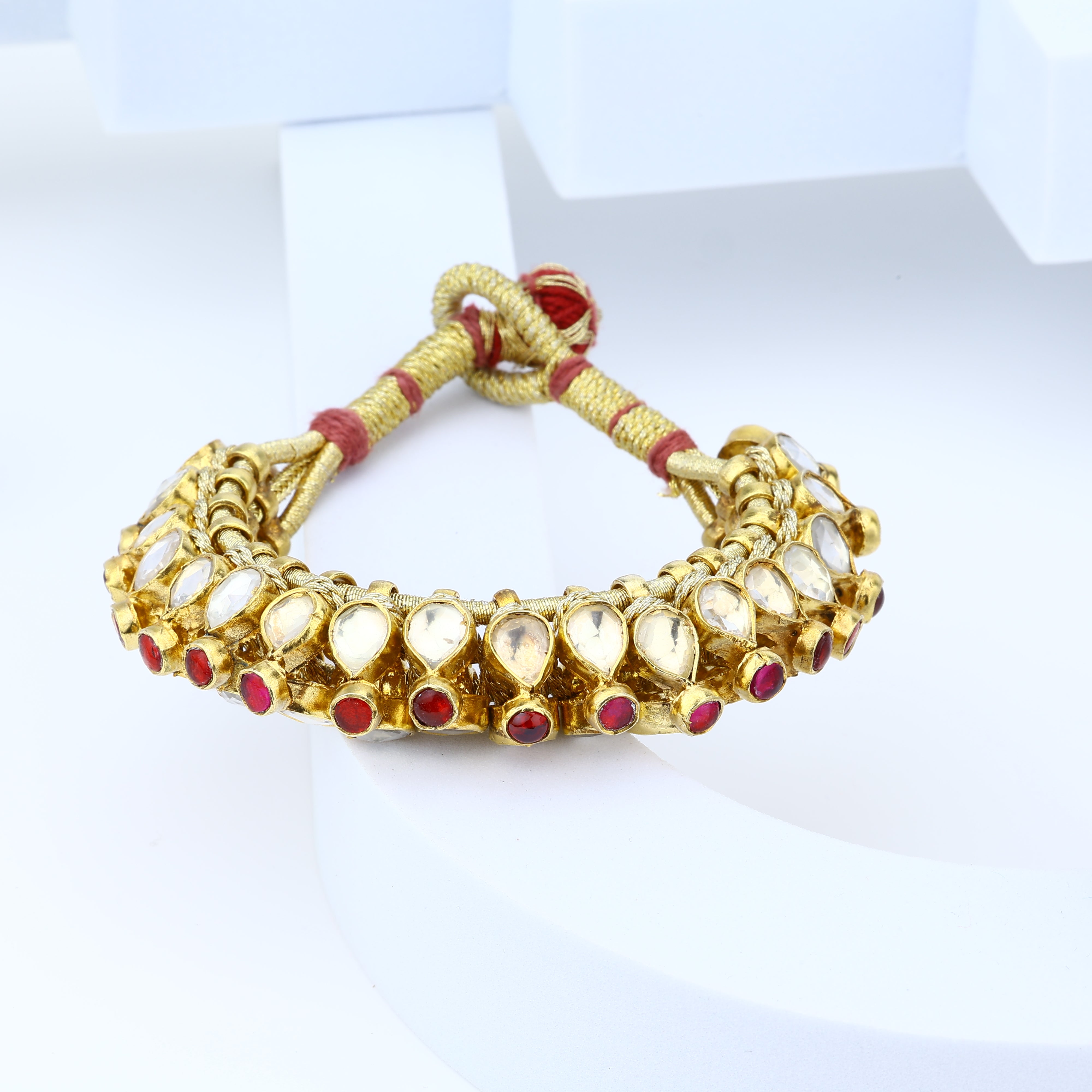Look and feel like royalty in this Sujhal Royal Ode bracelet. Adorned with brilliant garnet gemstones and shimmering moissanite, this luxury accessory redefines everyday glamor. Slip it on to add an opulent touch to any outfit, whether dressing up a casual look or complementing an evening gown. The deep red garnets provide regal splendor, while the moissanite's sparkling facets catch the light like a crown jewel. Far from costume jewelry, this bracelet's gemstone blend exudes indulgent sophistication. Crafted to make a statement, the Royal Ode bracelet elevates simple looks with a touch of stately elegance. Don your wrist with this timeless piece and prepare to receive royal treatment.
