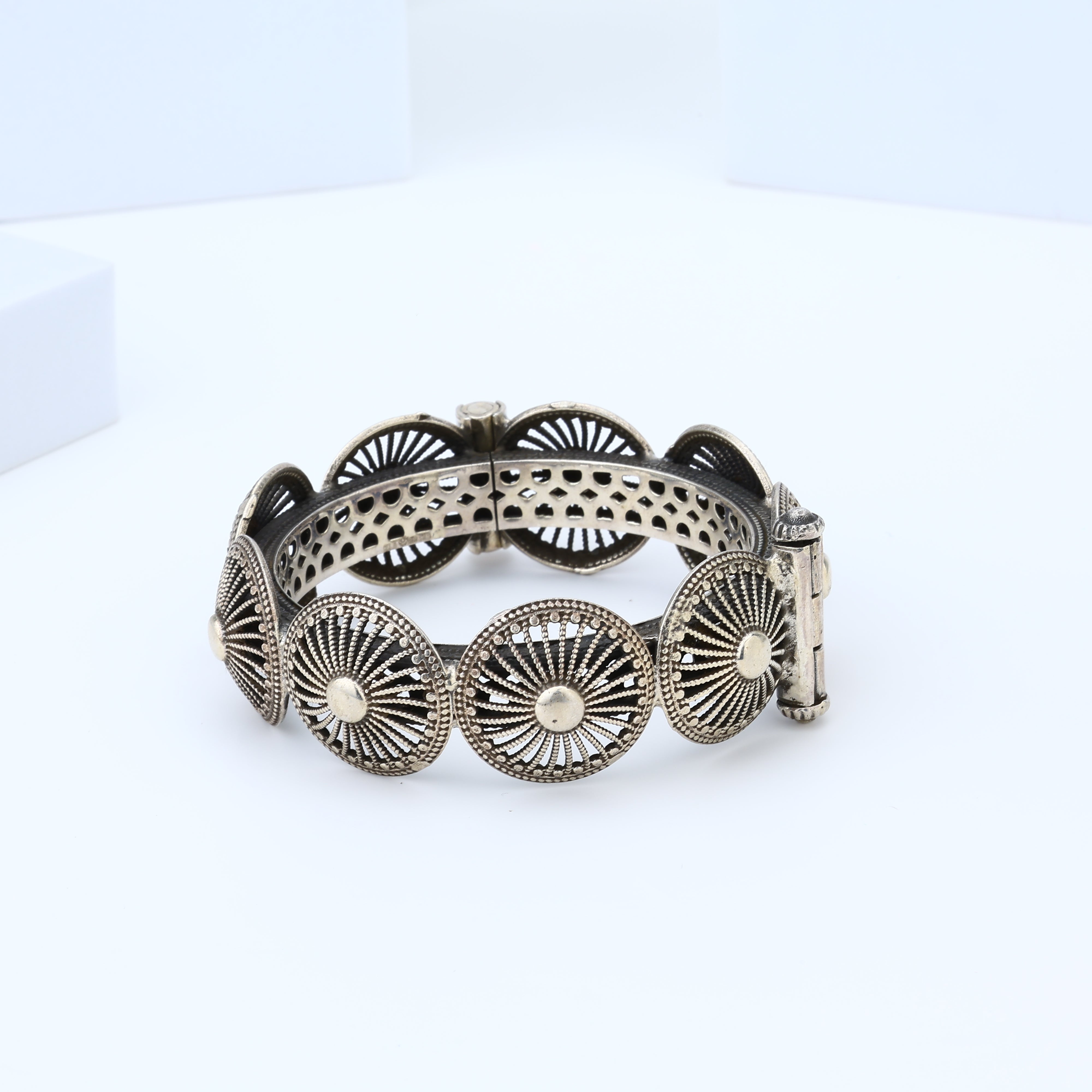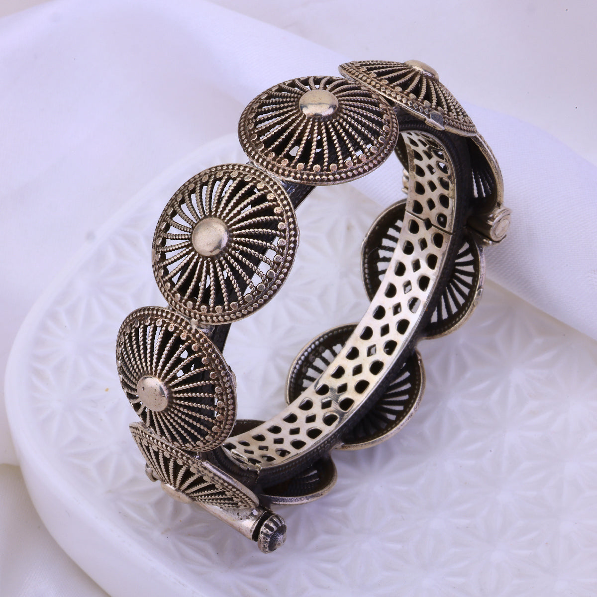 Cue the double take. This isn't your average bracelet duo—it's Double Trouble from Sujhal, a luxury oxidized bracelet set that demands to be noticed. The rich, antiqued finish lends an edgy yet timeless vibe that seamlessly transitions from day to night. But the real showstopper? The minimalist mixed metal design that somehow feels both deliciously daring and effortlessly refined. Whether stacked or worn solo, these bracelets make an undeniable statement about your impeccable style. The hard part is choosing which wrist gets the honor. After all, with jewelry this irresistible, a little trouble never looked so good.
