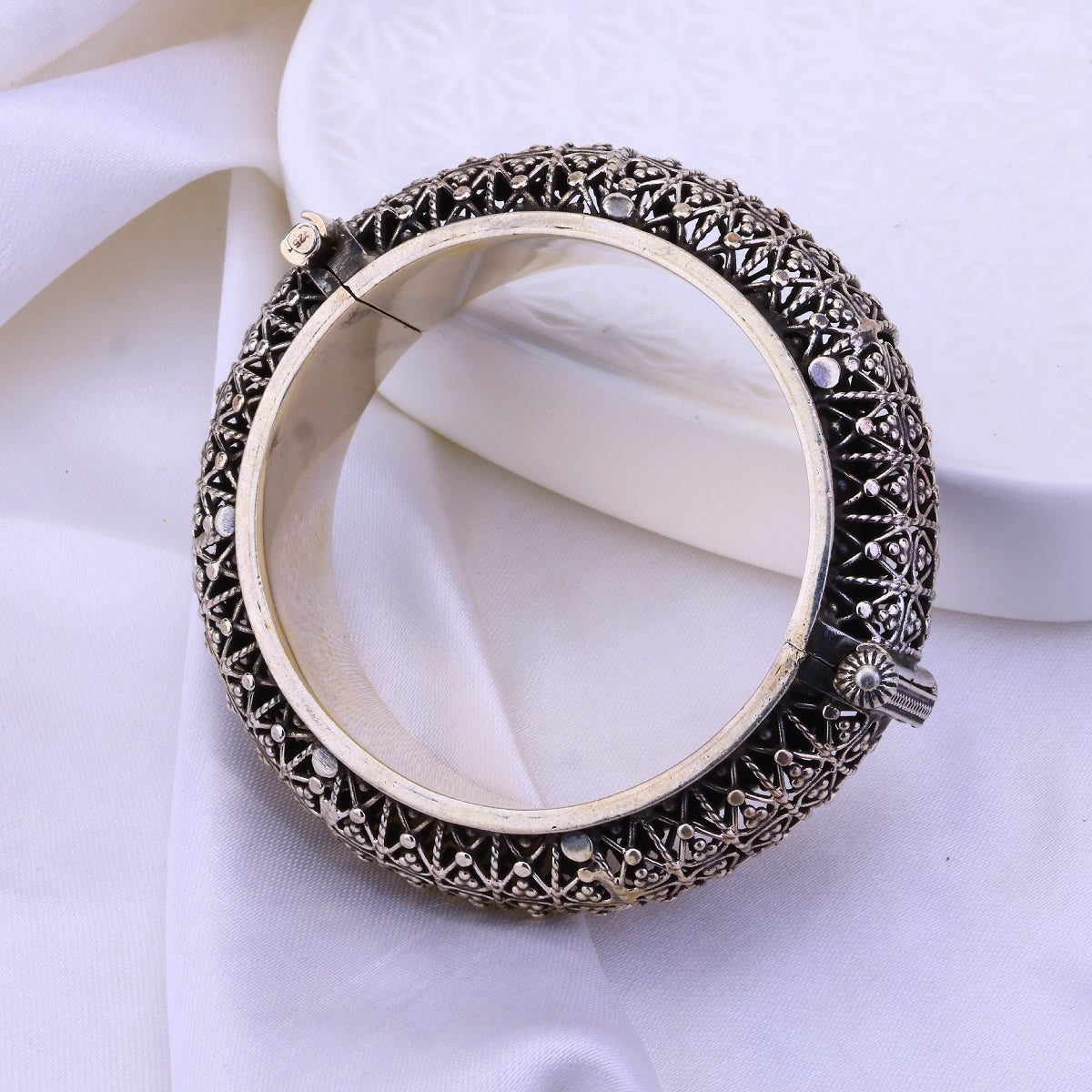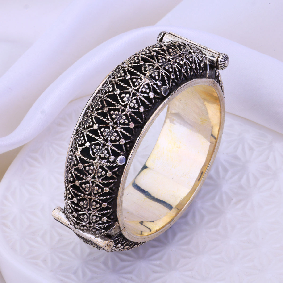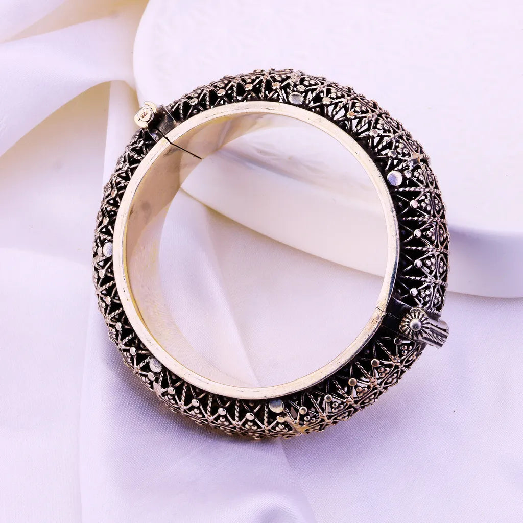 Indulge in regal opulence with the Ananya Bandh bracelet by Sujhal. An artful blend of intricate metalwork and oxidized luxury, this standout cuff captures the ornate beauty of Indian craftsmanship. Slip it on to turn heads with its eye-catching, globally-inspired aesthetic. Handcrafted and brimming with artisanal flair, this luxury bracelet elevates any look. Whether adorning your wrist solo or layered with other pieces, the Ananya Bandh makes an unforgettable statement. Embrace the spotlight in this showstopping accessory.