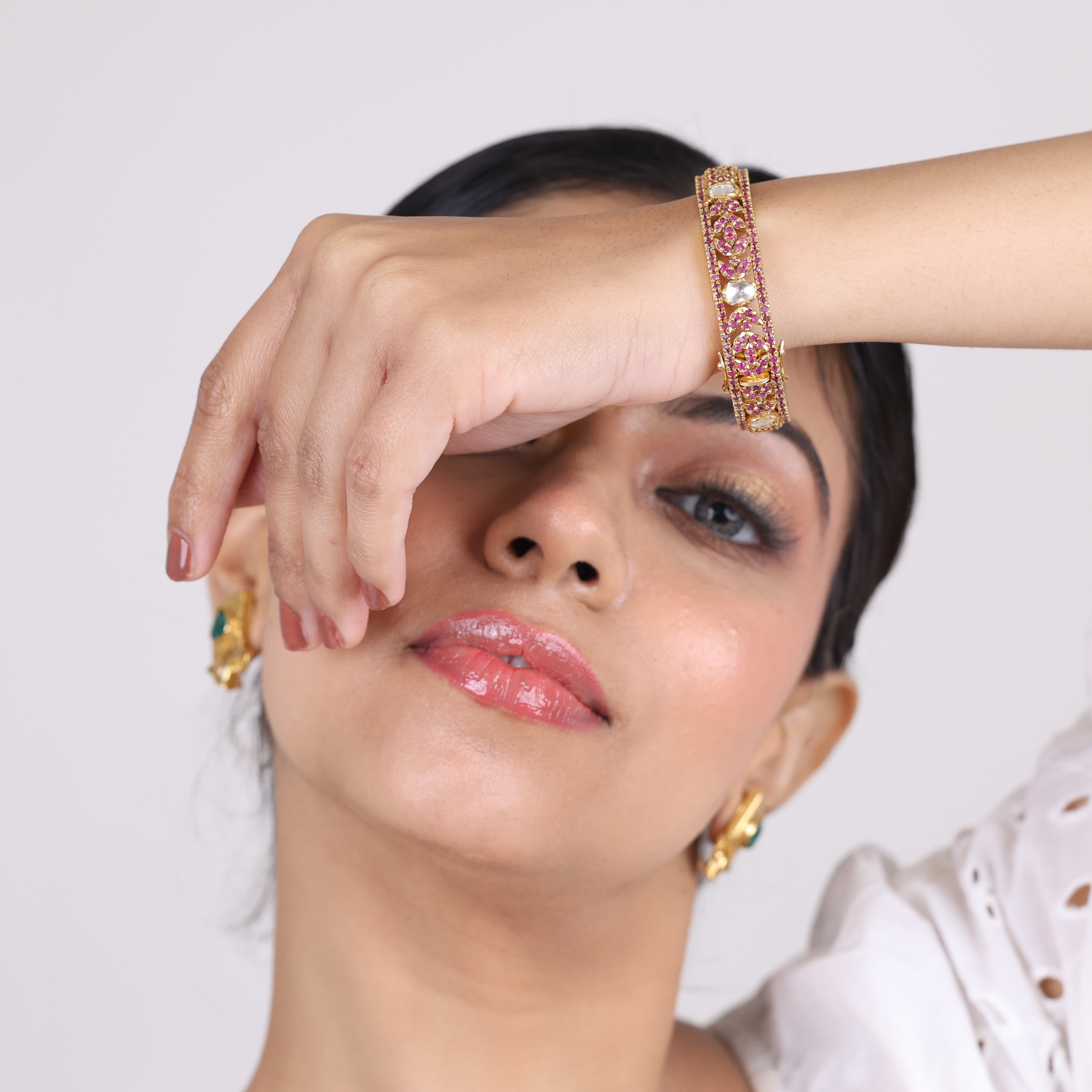 Crave a little crimson drama? This ravishing ruby blend moissanite bracelet will have you seeing red — in the most irresistible way. Flaunting a garnet-inspired hue that's equal parts fiery and luxe, each faceted gemstone blazes with hypnotic brilliance. Yet unlike rubies, these scintillating stones won't set your bank account ablaze; moissanite offers jewel-toned radiance without the premium price tag. Whether stacked with other bangles or worn solo, this sumptuous bracelet makes every ensemble smolder. No more playing the wallflower — with its head-turning sparkle and bold, blood-red shade, this ravishing ruby blend moissanite bracelet commands the spotlight. Prepare to leave a trail of envious admirers in your wake.