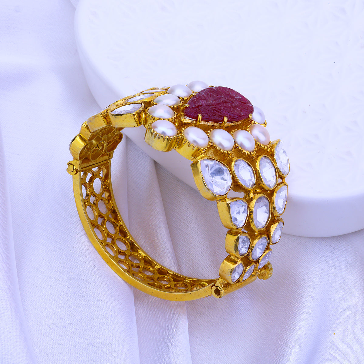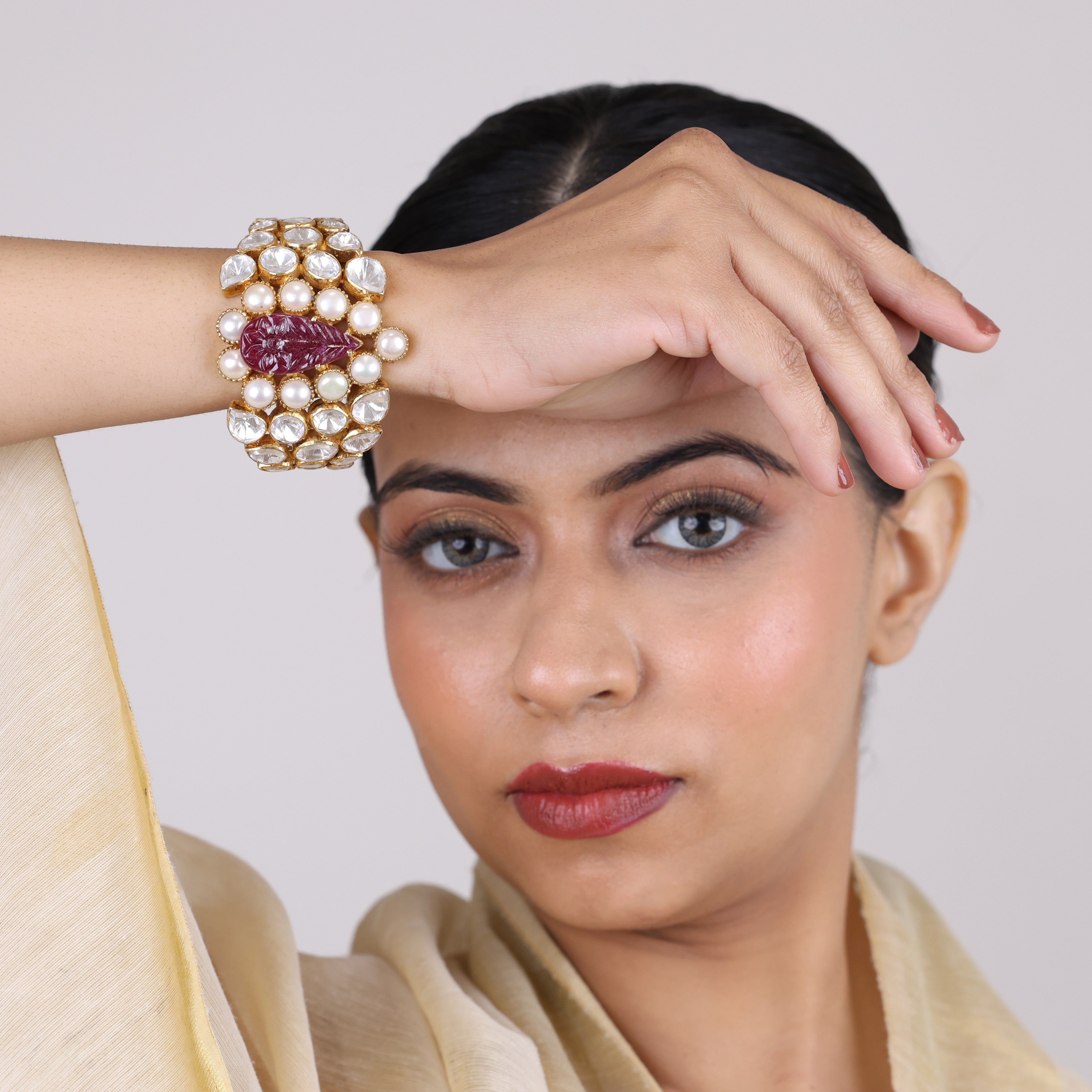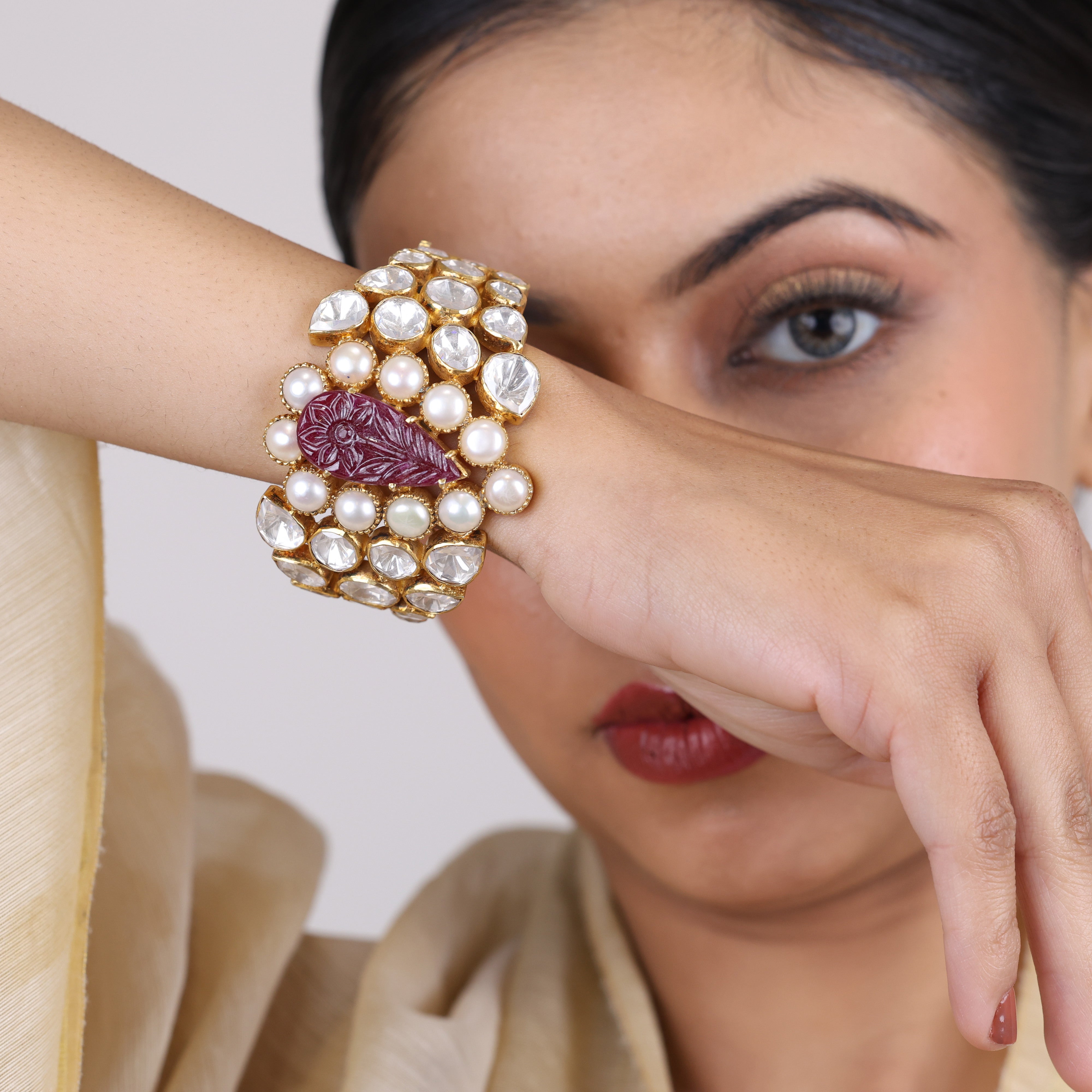 Dripping with opulence, this moissanite bracelet flaunts fiery ruby teardrops amidst lustrous pearls. Each moissanite gemstone mirrors the kaleidoscopic fire of a diamond, offering jaw-dropping brilliance at a fraction of the cost. Nestled alongside, deep red rubies smolder with regal splendor while pearlescent orbs lend a timeless elegance. Designed to take your breath away, this bracelet seamlessly transitions from the boardroom to the red carpet. After all, why reserve luxury for special occasions when you can indulge in affordable glamor every single day? A testament to impeccable craftsmanship, this moissanite, ruby, and pearl blend elevates any ensemble with its head-turning sparkle and rich color palette. Consider it jewelry nirvana, no velvet ropes required.