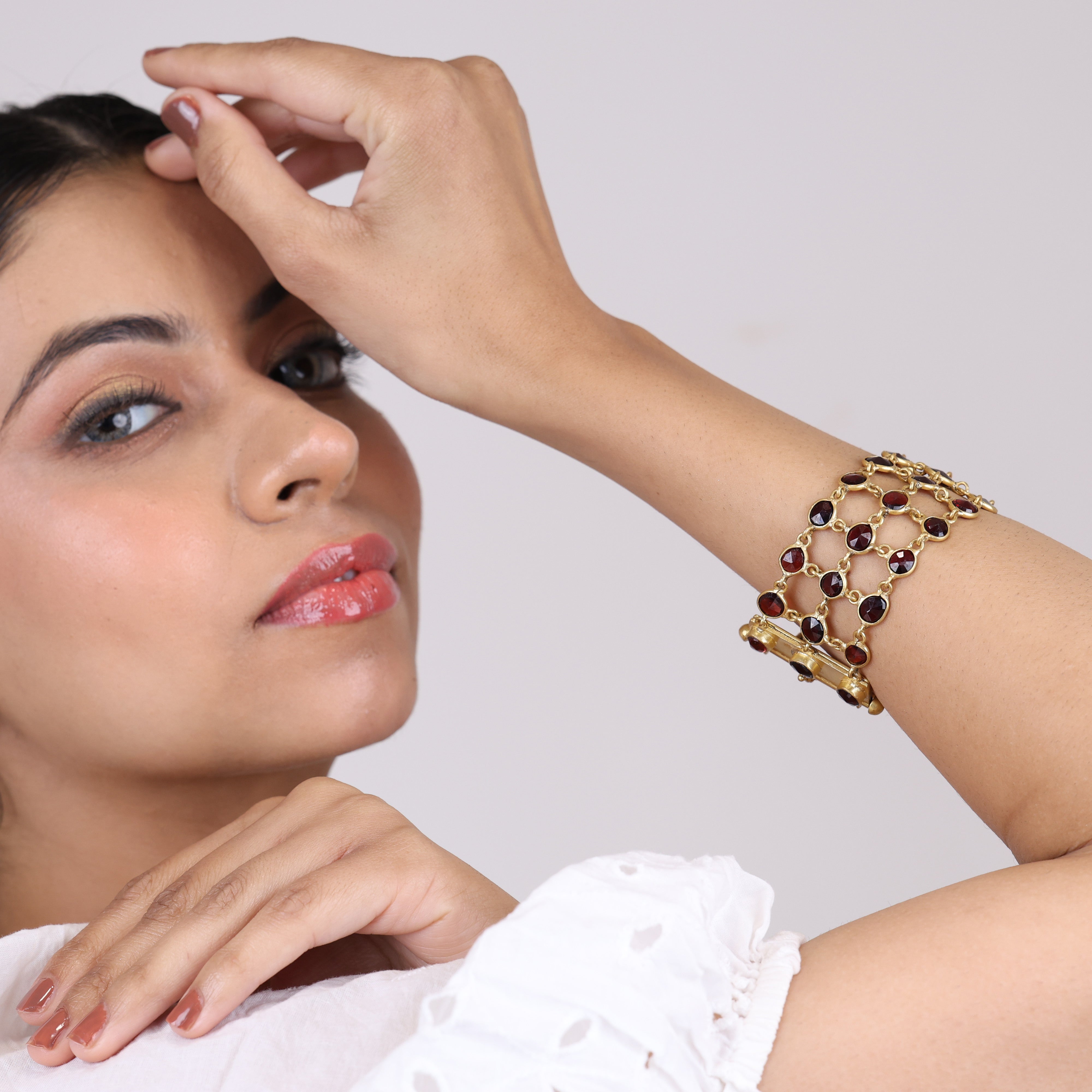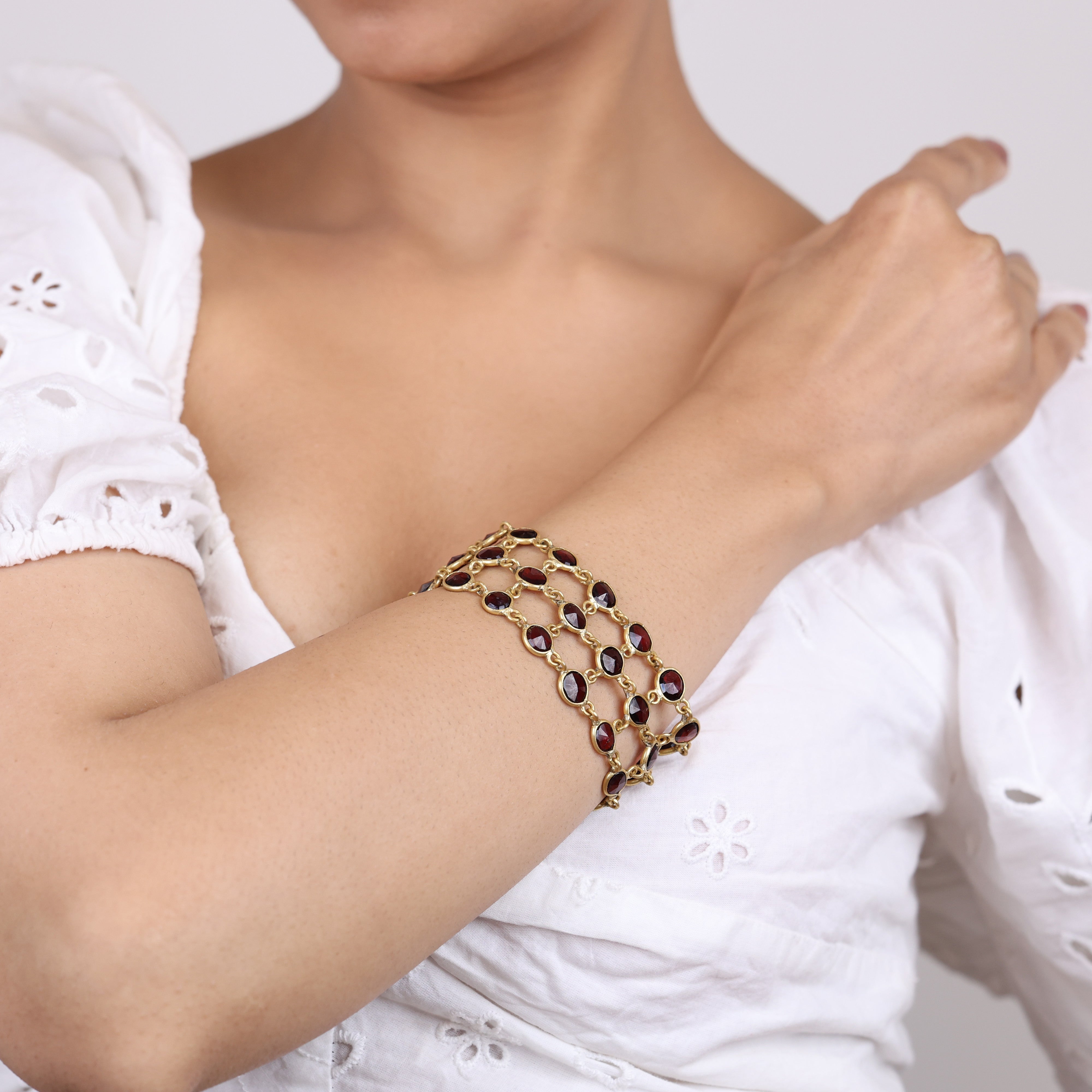 Crimson teardrops frozen in time, this garnet bracelet ensnares the eye with its smoldering allure. Lustrous, deep red garnets radiate passion and timeless luxury—the perfect accessory to punctuate any ensemble. These fiery gemstones have long been symbols of romance, making the bracelet a bold declaration of eternal devotion. Yet garnets are also prized for their resilience and lasting brilliance. This isn't just a pretty bauble; it's an investment in perennial style that will turn heads for years to come. Whether worn to a candlelit soiree or to glam up your daily fit, each garnet droplet tantalizes with its molten, mesmerizing glow. It's time to indulge in a little opulence—you deserve jewelry as vibrant and tenacious as you are.