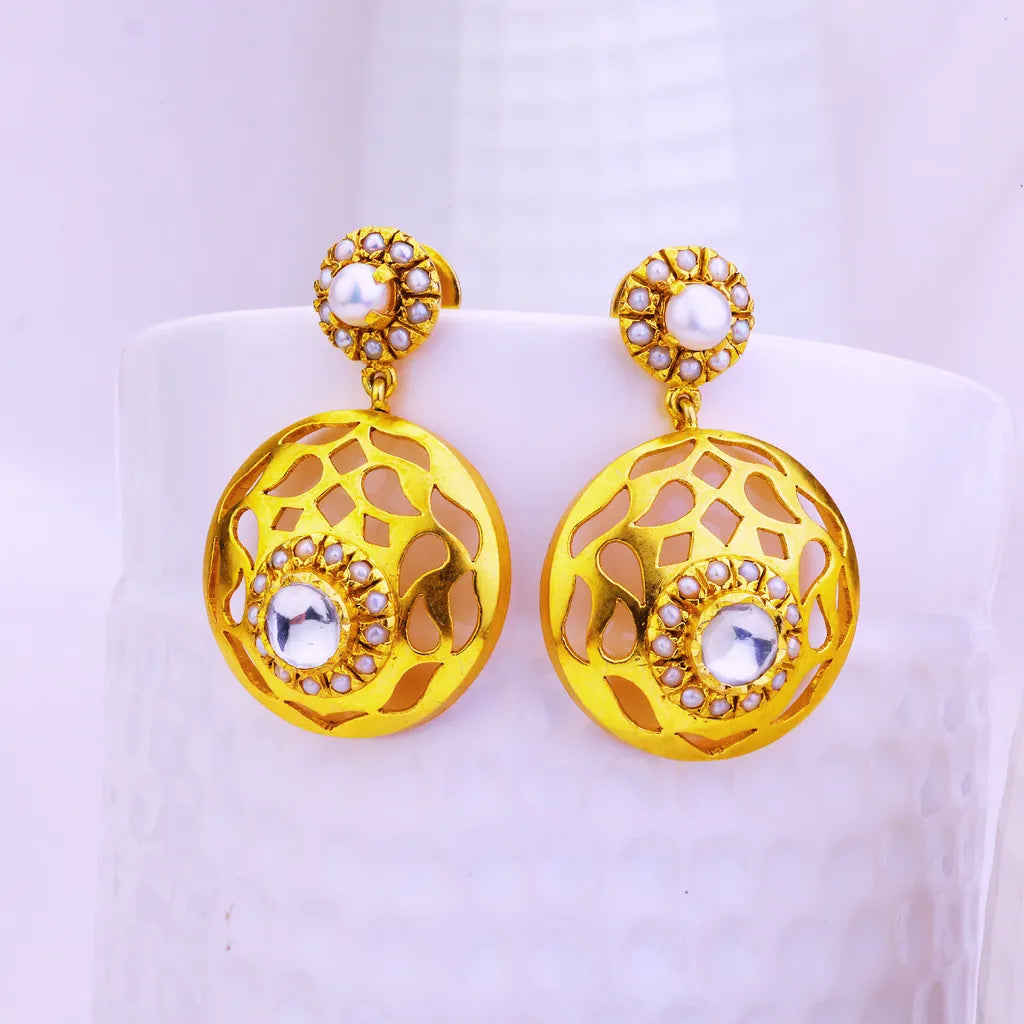 Ordinary earrings, these are not. Sujhal's Pearl Passion earrings redefine everyday luxury with an exquisite blend of cultured pearls and fiery moissanite gemstones set in 18K gold plating. Each pair is a work of art, handcrafted by skilled Bengali artisans using ancient polki techniques that highlight the gemstones' fire and brilliance. Slip them on and feel the weight of true craftsmanship—a modern heirloom passed down through generations. These showstopping earrings are made for the woman who savors life's finer details, from the soft luster of pearls to the dazzling dance of light on gemstones. Whether dressed up or down, Pearl Passion earrings are the ultimate accessory for turning heads and capturing hearts.