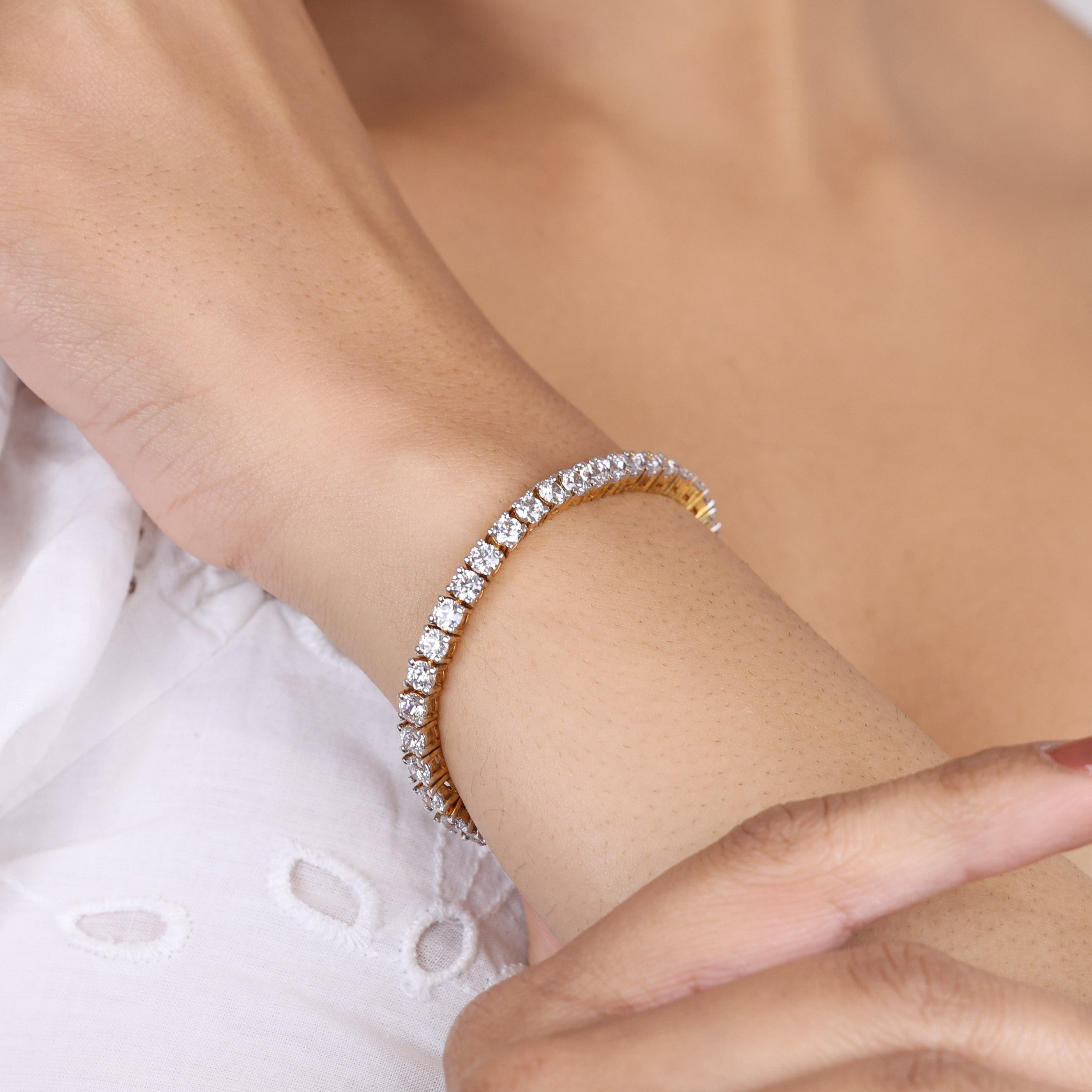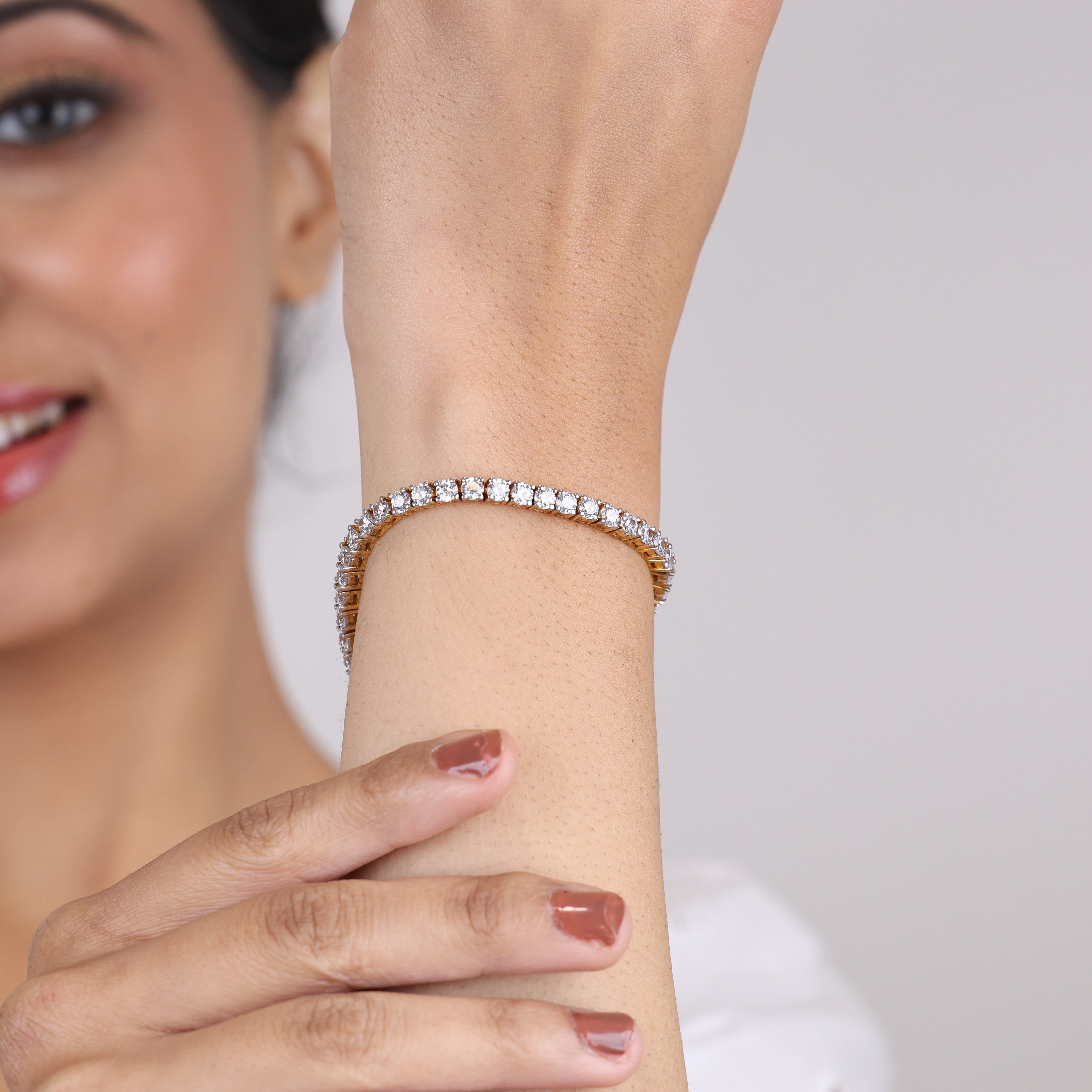 When you crave jewelry that radiates decadence, reach for Sujhal's Euphoria Dust bracelet. This sophisticated arm candy flaunts a dazzling array of Swarovski diamonds—faceted to fiery perfection—set in an 18k gold and rhodium-plated band. Every inch glistens with heirloom-worthy splendor, a testament to the exquisite Bengali craftsmanship. Whether draped over your bare wrist or stacked with other jewels, this glittering cuff commands attention and respect. Luminous yet refined, it's a luxury status symbol for those who understand true opulence isn't ostentatious, but quietly assured. So slip into Euphoria's diamond dust and prepare to leave a glamorous trail wherever you go.