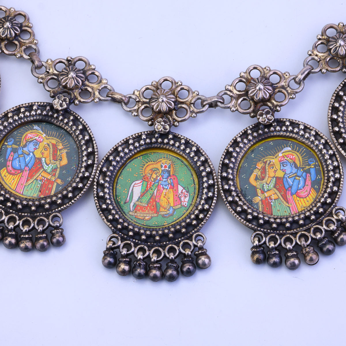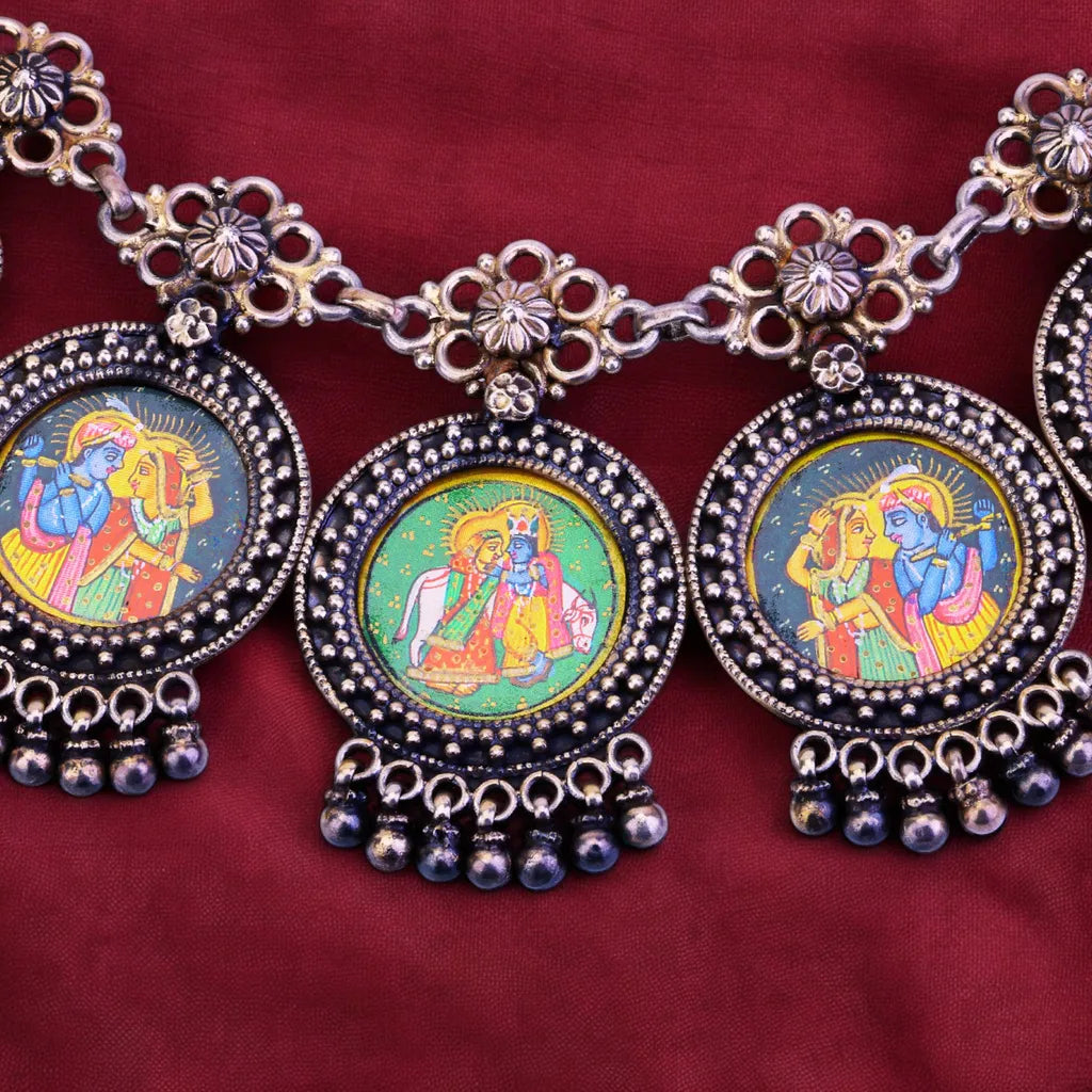 Savor the sophisticated allure of bygone eras with Sujhal's Shivani Shringar necklace. Opulent yet understated, this oxidized beauty evokes a timeless, antique aura that transcends fast trends. Each handcrafted link shimmers with rich patina and artisanal craftsmanship, elevating this necklace to true luxury status. An investment in elegant style, this piece masterfully blends vintage appeal with modern versatility. Adorn your neckline for a glamorous evening out or let it casually elevate your daytime looks—either way, this stunner makes a statement. Forged from the finest materials with meticulous attention to detail, the Shivani Shringar redefines what it means to own an exquisite jewelry heirloom. Indulge in the splendor of this oxidized necklace, where classic sophistication meets contemporary chic.