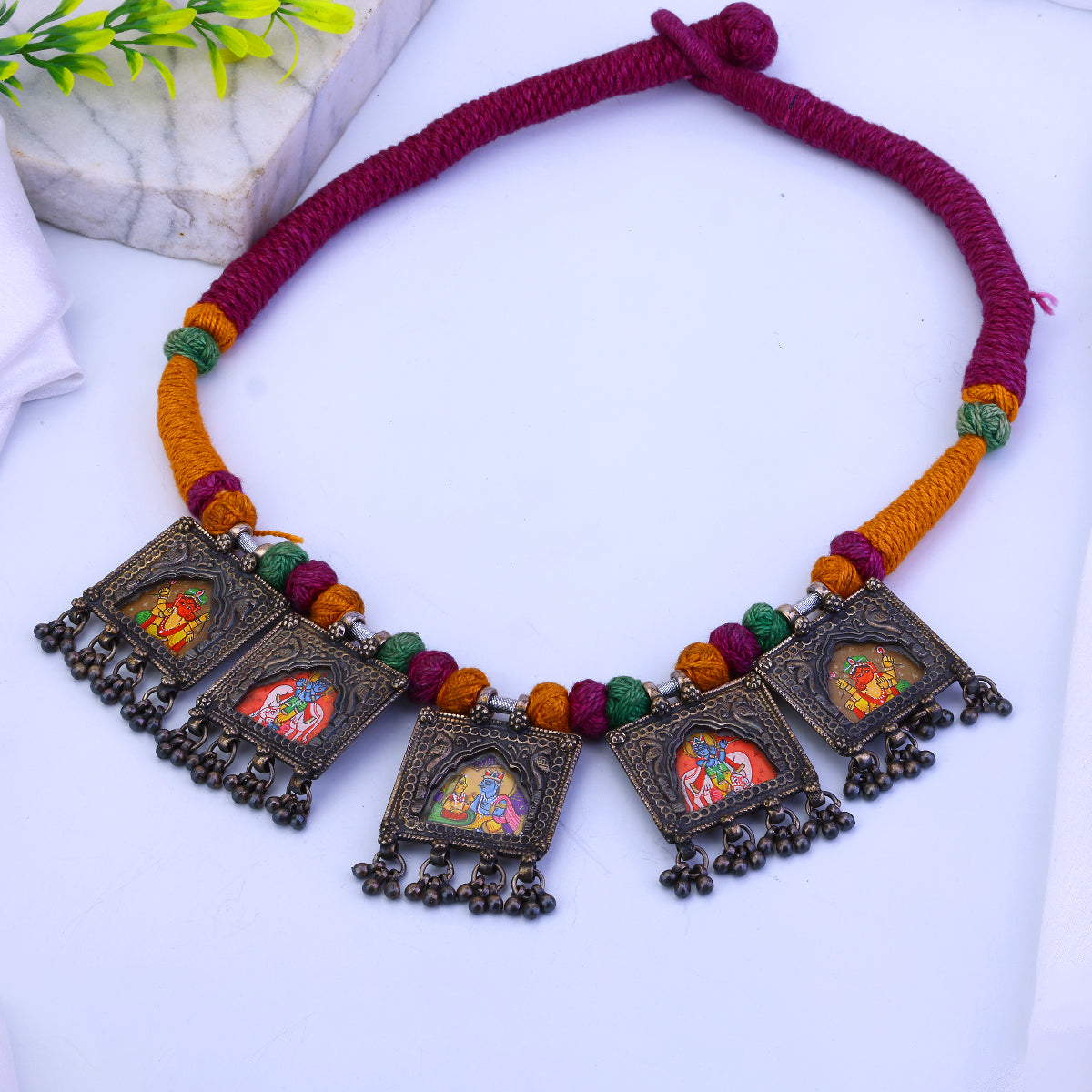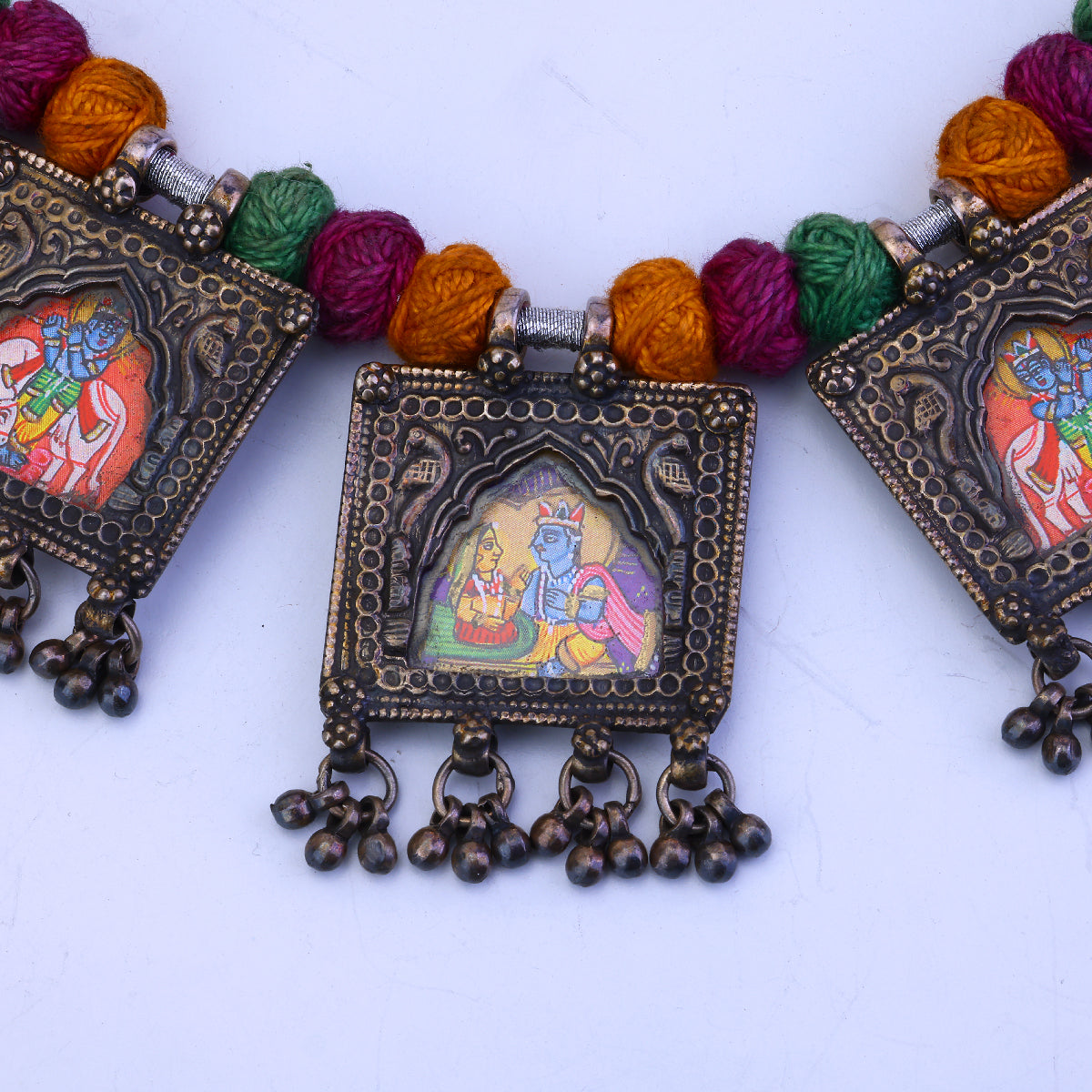 Crafted from oxidized silver, this striking Sujhal necklace takes inspiration from ancient Indian temple paintings. At once ethereal and grounded, its intricate patterns evoke sunlight glistening on morning dew. An artful study in contrasts, the necklace's feather-light chains and pendants feel rich in meaning and spirituality, yet appear delicate enough to float away on a breeze. Wear it as an everyday amulet or style it for special occasions—this handcrafted piece brings an air of luxury to any look. With its one-of-a-kind oxidized finish, each necklace is truly a limited edition.
