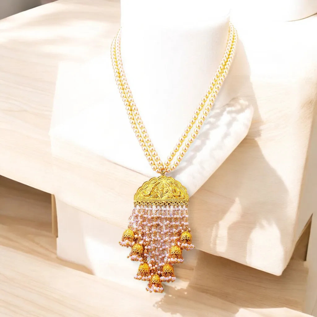 Once reserved for nobility and high society, pearls have long symbolized timeless refinement. This Sujhal pendant flaunts that signature luminous sheen and ethereal glow, instantly elevating your everyday looks with an air of understated sophistication. Meticulously strung by skilled artisan hands, each lustrous pearl exudes an effortless elegance that transcends trends. Drape it over a casual tee and jeans for an unexpected contrast, or let it pool at your décolletage atop an evening gown for an elegant flourish. No matter how you style it, this ornate treasure feels at once modern and heirloom-worthy—a delicate talisman imbued with the regal allure of generations past.