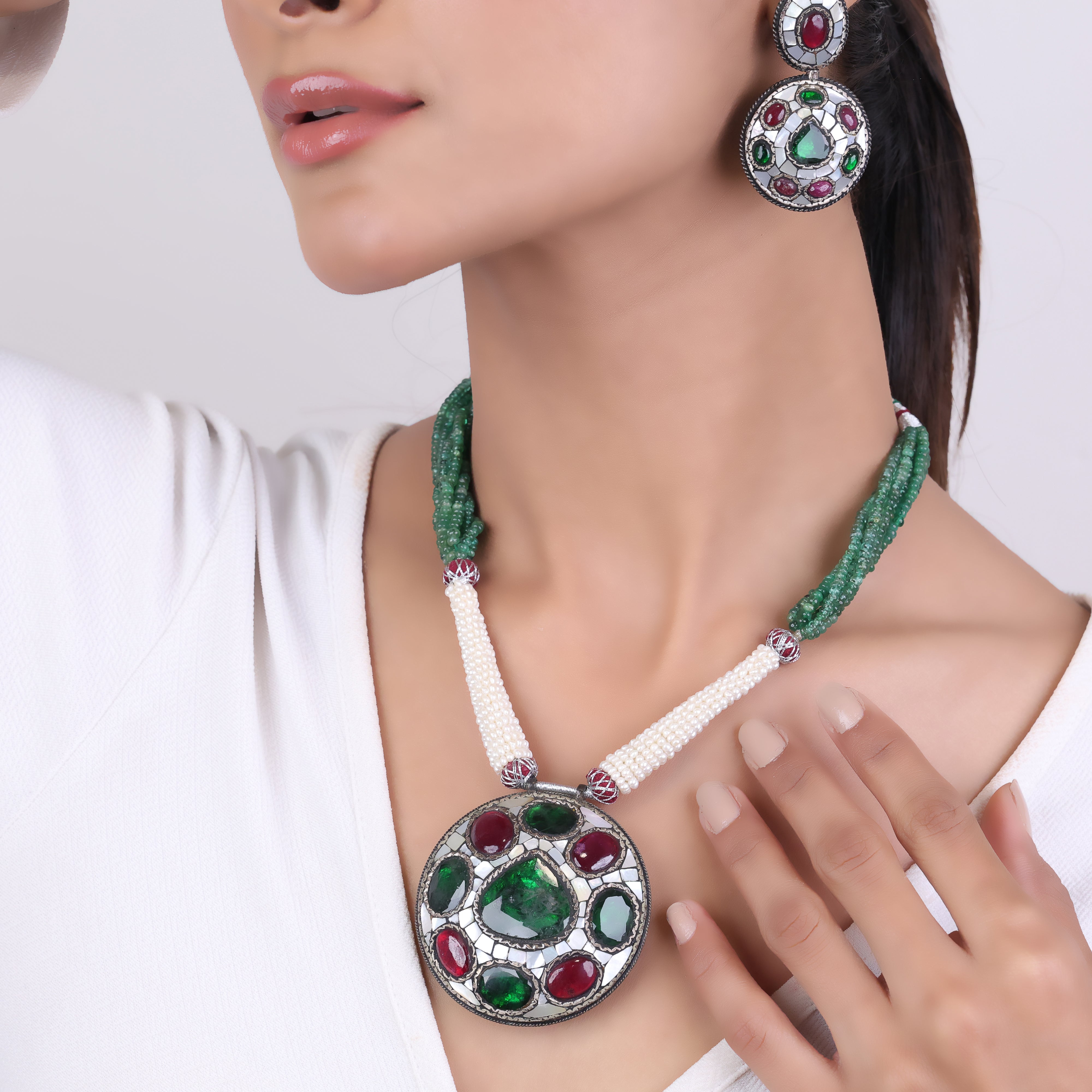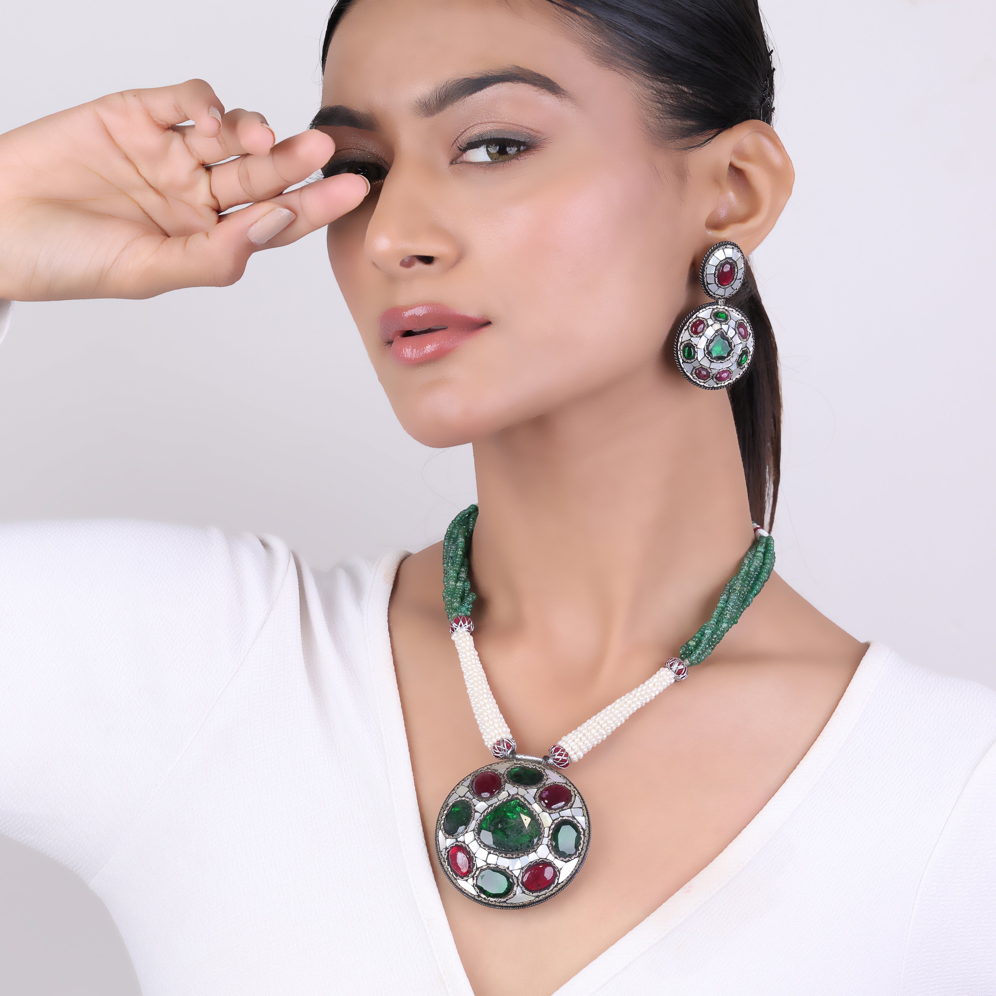Elevate your most cherished moments with a touch of artistic grace. Wear this set to special occasions, intimate gatherings, or cultural celebrations, and let its rich gemstones and delicate sparkle make every memory even more exquisite.