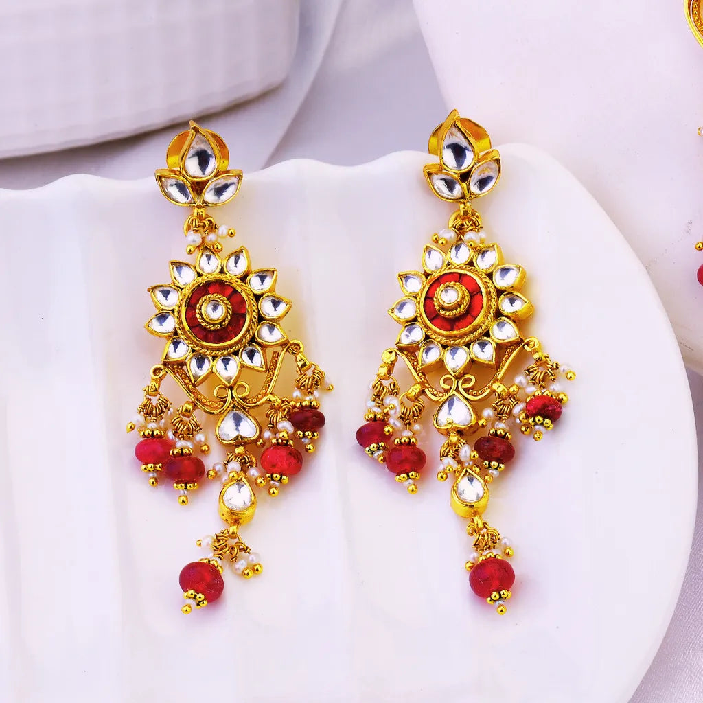 Indulge in the extravagant sparkle of Sujhal's Ruby Blush pendant set. Fiery rubies take center stage, radiating passion and romance. But this luxurious design doesn't stop there — it's accented by luminous khakho pearls and brilliant moissanite gemstones. The result? A multi-tonal masterpiece that catches the eye from every angle. Make this ruby pendant your signature statement accessory, or let it become a cherished romantic gift. However you wear it, Ruby Blush elevates any look with its exquisite gemstone combination. Crafted with care, it brings affordable luxury within reach. Stunning, radiant, one-of-a-kind — just like you.
