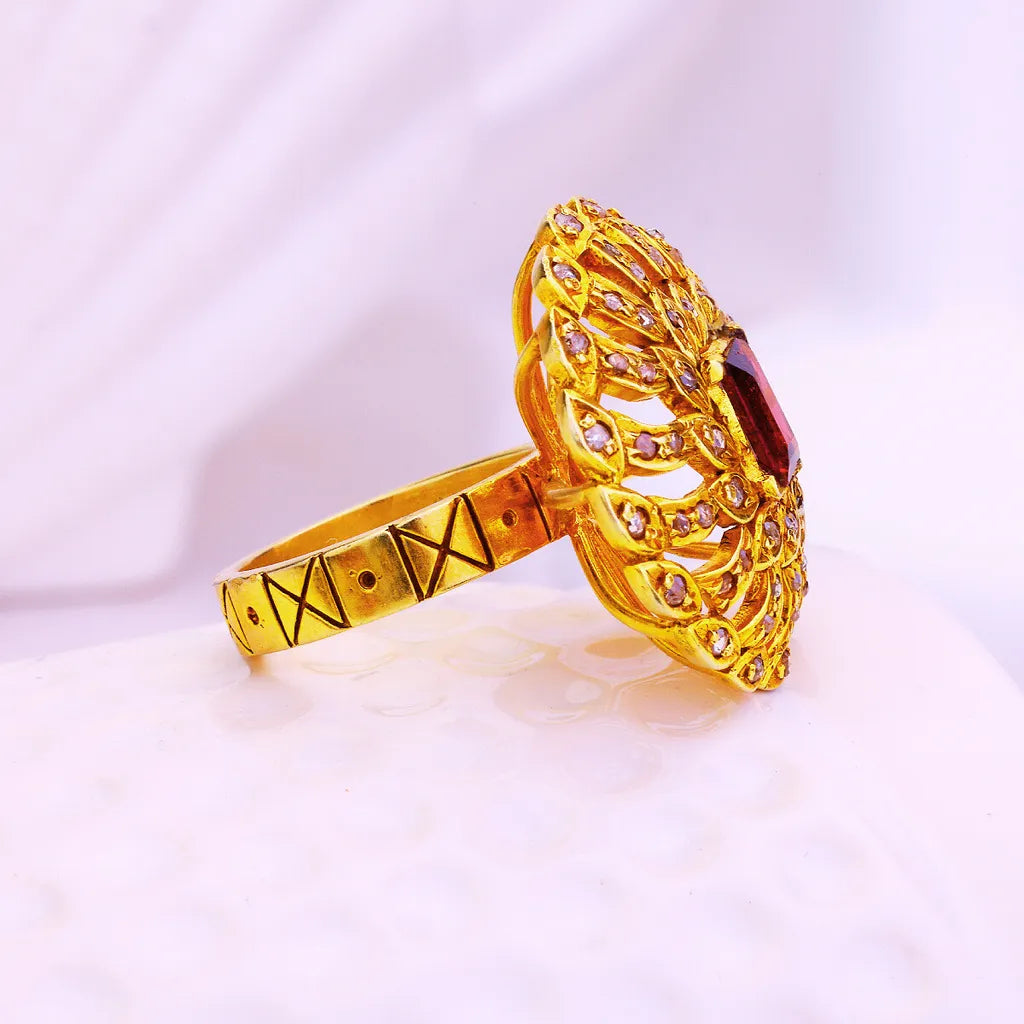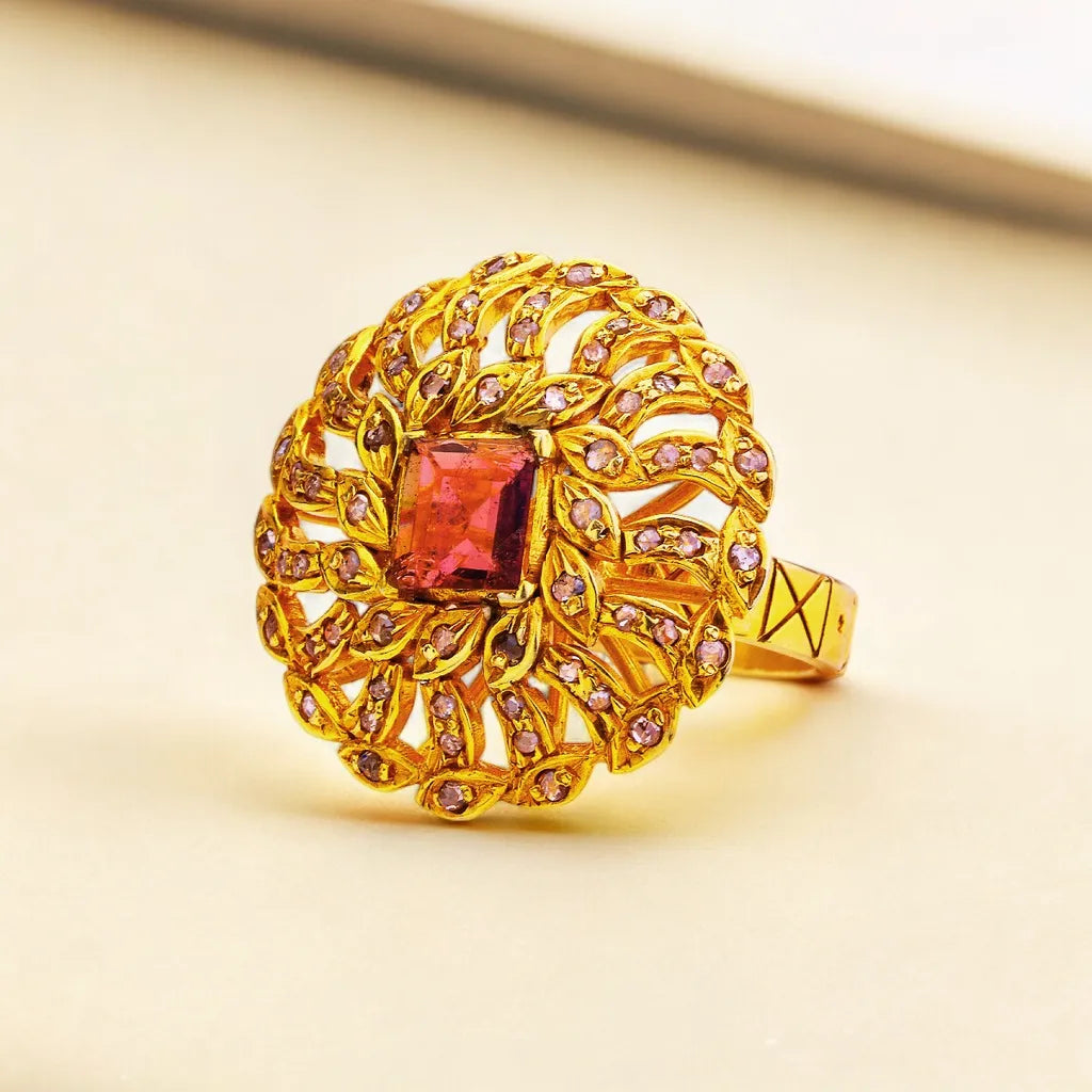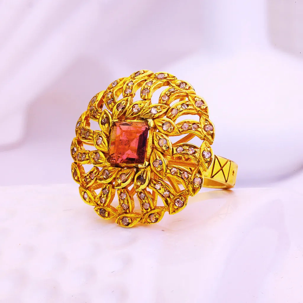 Enter a world of exotic opulence with Sujhal's Scarlet Spark rings. Lavishly adorned with vivid tourmaline and moissanite set in luxurious 18k gold plating, these statement pieces exude wearable glamor. But what truly sets them apart is the heritage craftsmanship behind each one—each ring is painstakingly handcrafted by skilled Bengali artisans using generational techniques passed down through the centuries. The result is a captivating fusion of contemporary luxury with Old World elegance that radiates vibrant allure. Indulge in the rich legacy and precious blend of materials that make these rings shimmer with an air of exclusivity. Elevate your style with a touch of global enchantment.