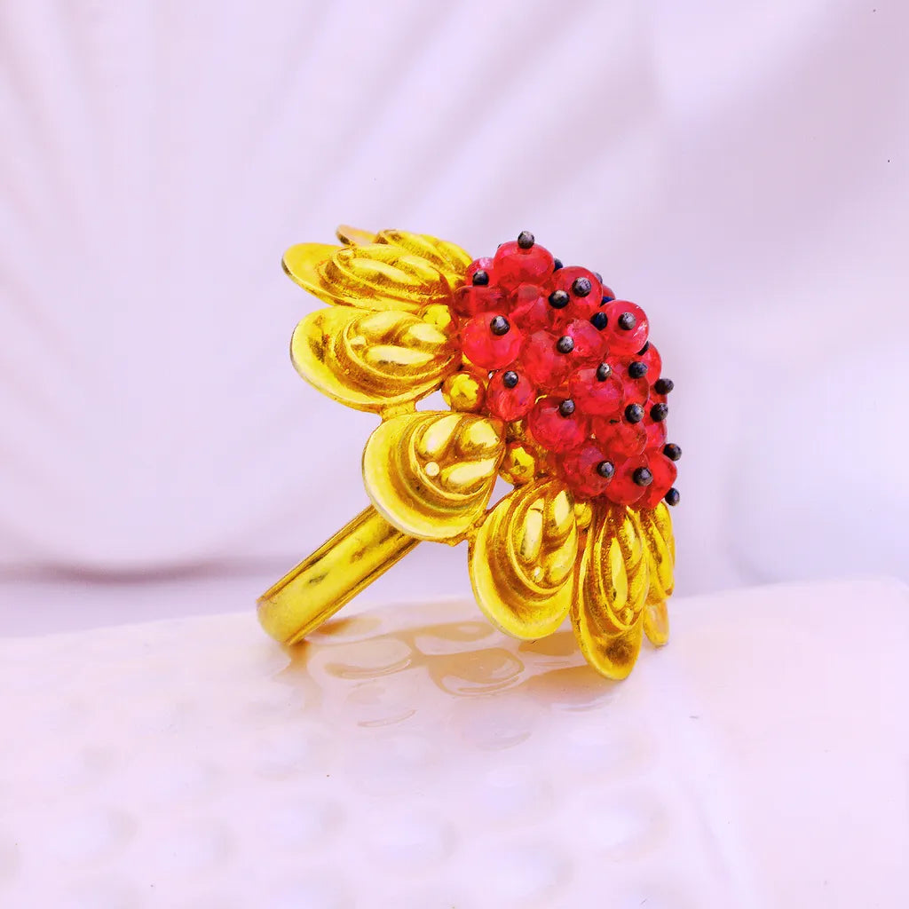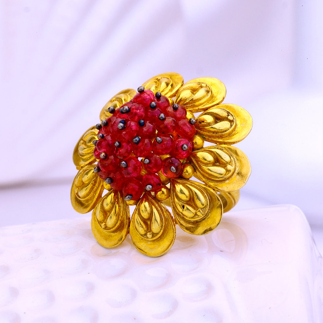 Black meets gold in this elegant interpretation of time-honored Bengali craftsmanship. Handmade by skilled artisans using intricate metalwork techniques, the Golden Radiance Loop ring exudes subtle glamor with its understated looped design. Genuine spinel gemstones catch the light, while sleek, dark rhodium plating imparts a modern, edgy contrast to the vibrant 18K gold. Slip on this timeless accessory to elevate any look with its eye-catching yet refined presence. Whether worn to the office or a special event, this striking statement ring will quickly become your signature piece. Crafted to withstand the test of time, it's an heirloom-worthy investment in both style and tradition.