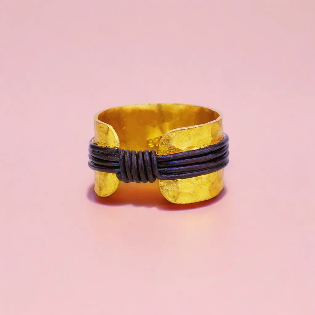 Tradition wrapped in contemporary luxury—the Golden Girdle. This statement piece takes the intricate craftsmanship of Bengali artistry and reimagines it through a modern lens. The 18K gold and black rhodium plated rings create a bold, eye-catching contrast. Yet the luxurious materials don't outshine the sophisticated elegance that shines through. The Golden Girdle strikes the perfect balance between glamourous and graceful. For the fashion-forward woman seeking a jewelry piece that commands attention without shouting, this is the one. Its understated beauty whispers confidence and quiet power. Slip it on to elevate any outfit, day or night. Whether paired with tailored separates or an evening gown, this singular accessory transcends trends and occasions. Where contemporary style meets timeless tradition—that's the magic of the Golden Girdle.